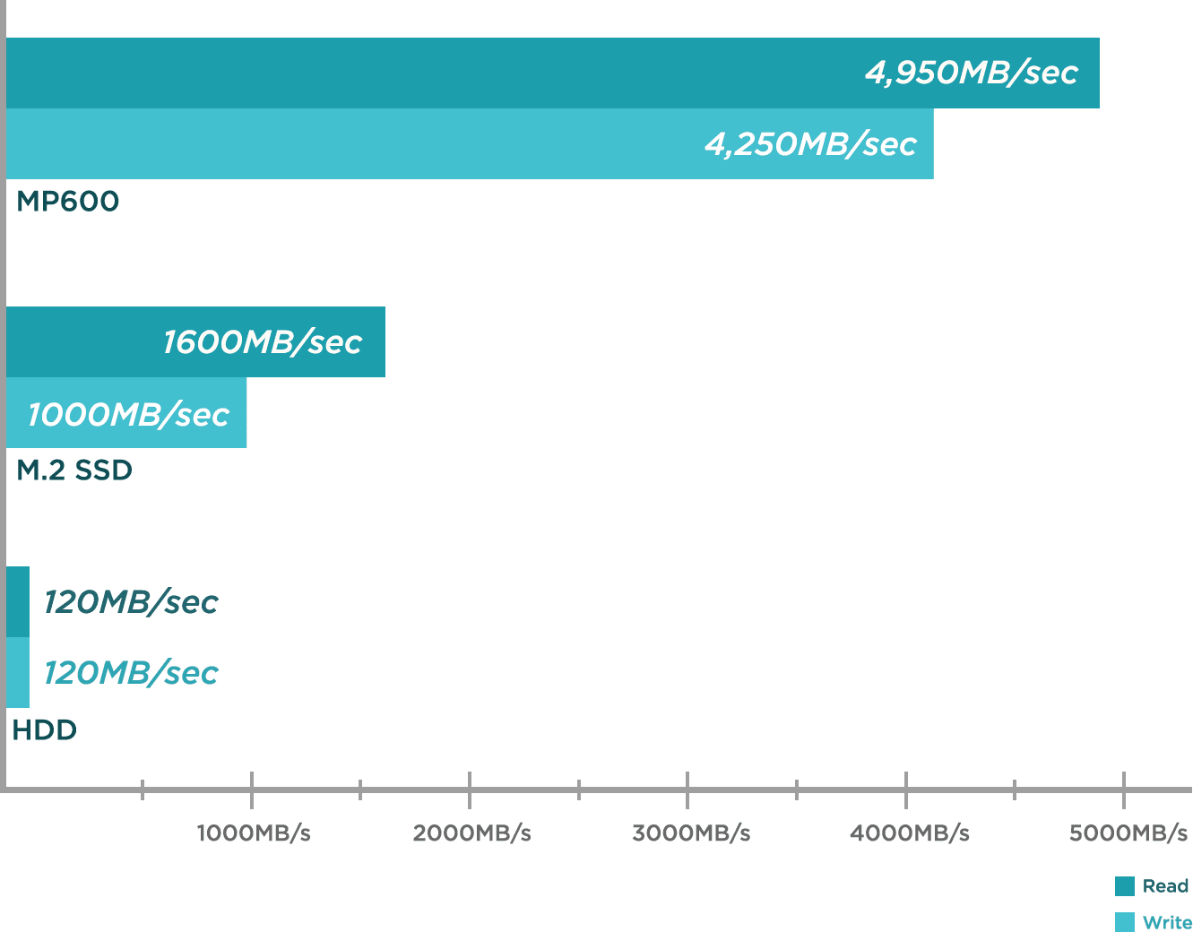 SSD satu ini benar-benar memanfaatkan kelebihan PCIe x4 yang mana mampu capai kecepatan baca 4,950MB/s dan tulis 4,250MB/s yang pada generasi PCIe sebelumnya berkisar di 2500-3000MB/s tergantung read atau write yang menunjukkan perbedaan signifikan.