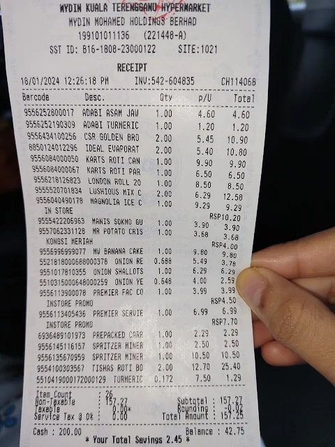 الصفحة الرئيسية Shopping byAdmin23 •يناير 17, 2024 0 Assalamualaikum semua. Shopping la hari ini.Shopping Di mydin. Ni nak pergi sabasun pula nak beli beras. Best lah dapat shopping pada hari ini. Rewards for myself. Hehe. Next destination nak pergi sabasun pula. Okeylah jumpa next entry ya. Facebook Twitter